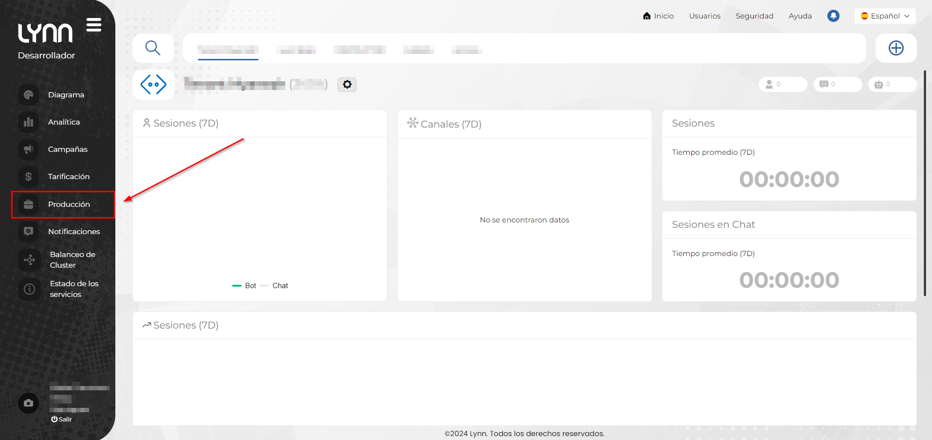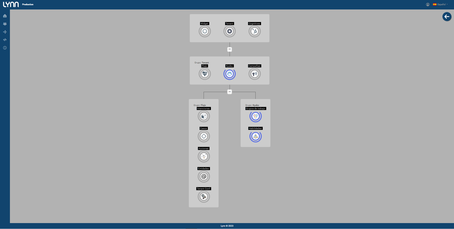 - En el costado izquierdo de la interfaz de la aplicación Lynn ubique el icono de “Producción”.