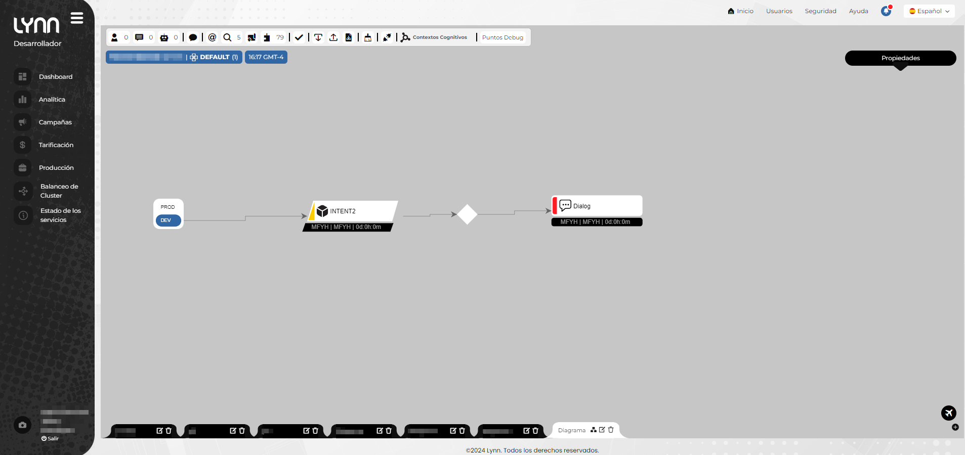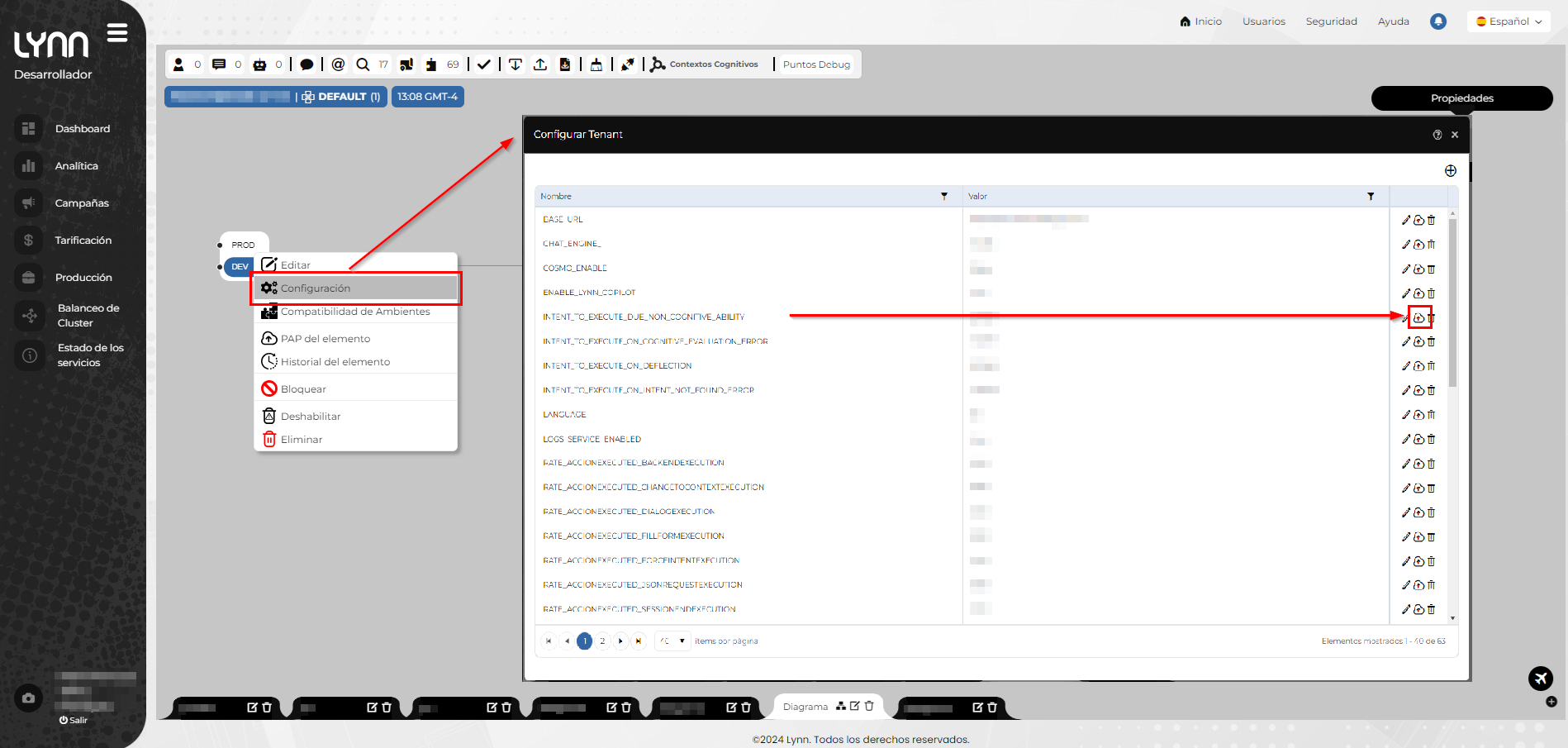 - Desde el diseñador de flujos, en la representación del tenant, visualice el listado de las intenciones configuradas. Si existe una modificación, deberá realizar un PAP del parámetro correspondiente.